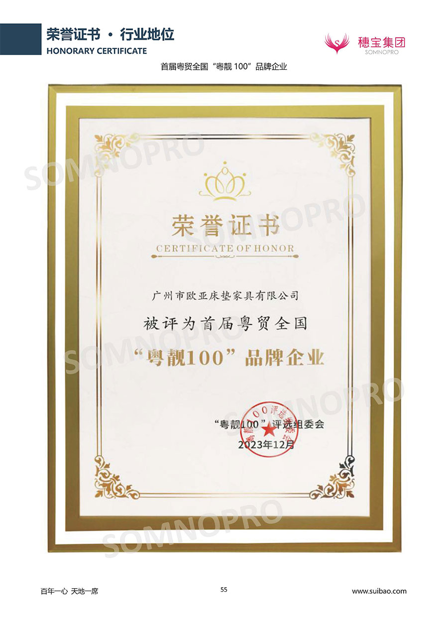 自1971年獨(dú)立研發(fā)生產(chǎn)出專屬國人的彈簧床墊,穗寶關(guān)于優(yōu)質(zhì)深度睡眠的研究已有半個(gè)世紀(jì)的歷史。穗寶一直專注床墊,專注中國消費(fèi)者的睡眠研究,針對(duì)中國人特點(diǎn)進(jìn)行優(yōu)化創(chuàng)新,不斷提升國人的睡眠體驗(yàn),只為成就每個(gè)晚上8小時(shí)的優(yōu)質(zhì)深度睡眠。憑借不斷革新的研發(fā)科技和深受消費(fèi)者信賴的產(chǎn)品品質(zhì),穗寶集團(tuán)旗下品牌和產(chǎn)品屢獲國內(nèi)外大獎(jiǎng),連續(xù)20年榮膺中國500最具價(jià)值品牌,品牌價(jià)值高達(dá)302.89億元。