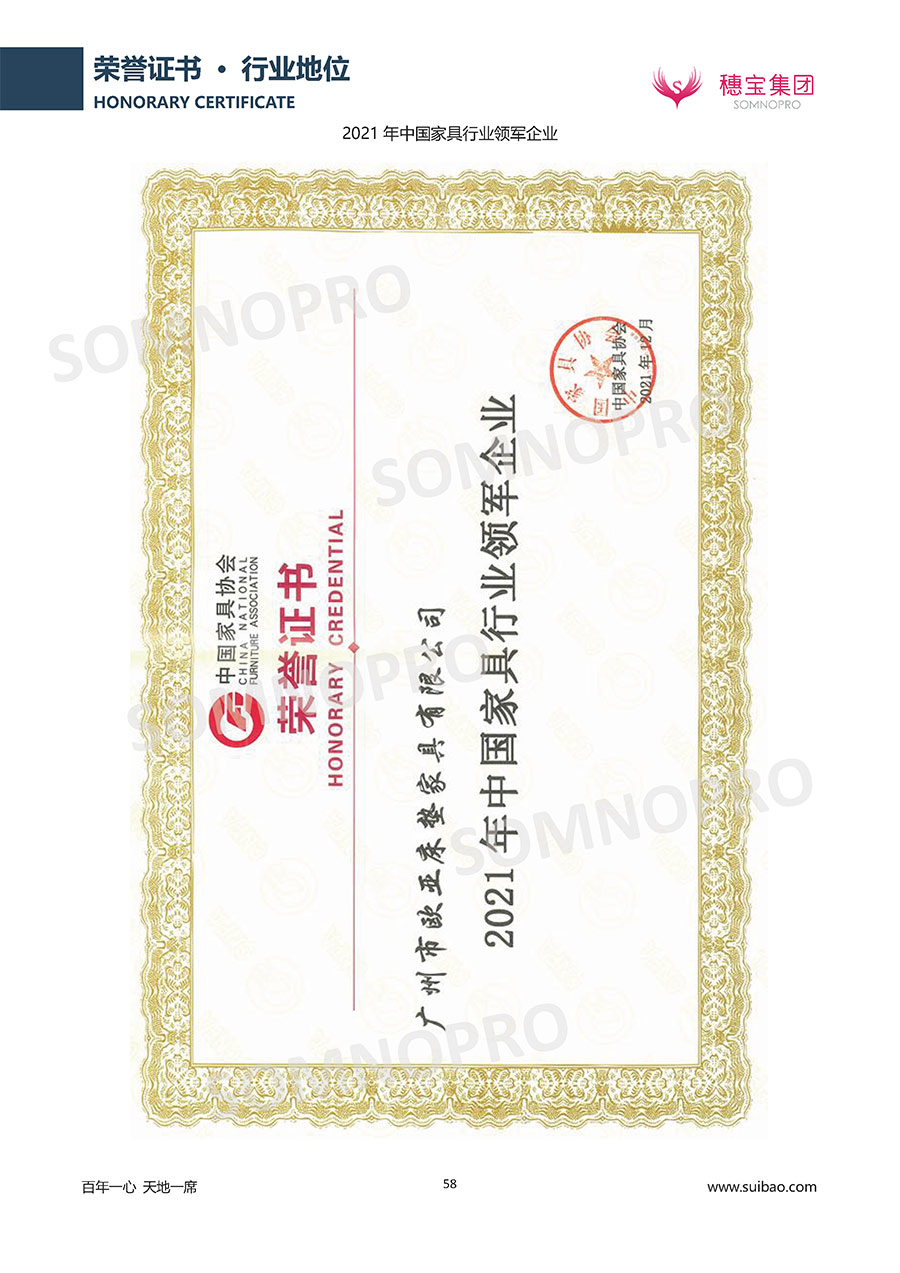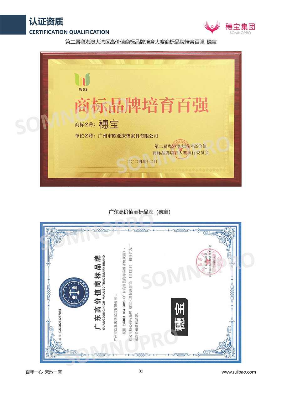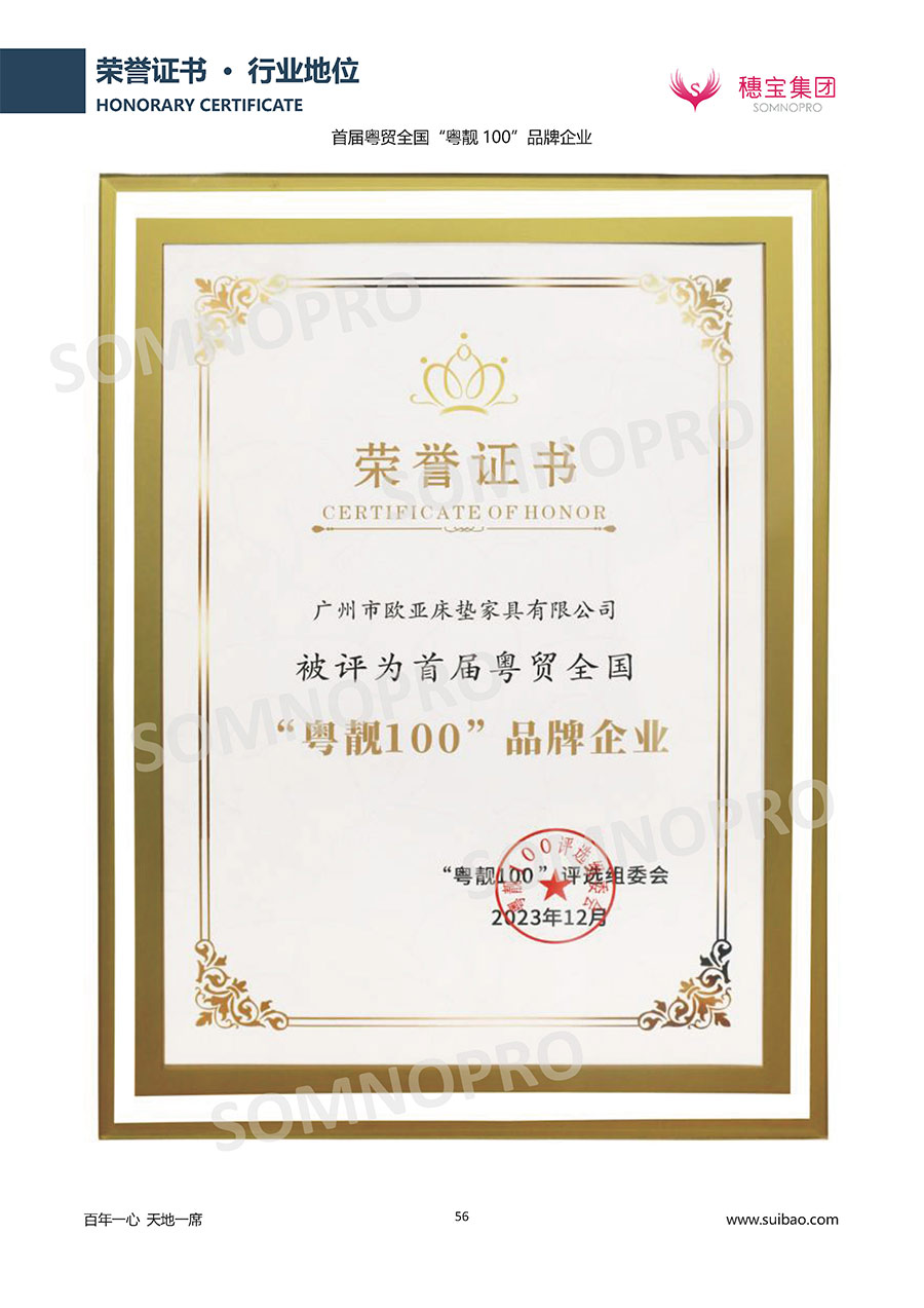 自1971年獨立研發(fā)生產出專屬國人的彈簧床墊,穗寶關于優(yōu)質深度睡眠的研究已有半個世紀的歷史。穗寶始終以“懂科學的時尚國民品牌”為定位,堅守“百年一心 天地一席”的價值追求,專注中國消費者的睡眠研究,針對中國人特點進行優(yōu)化創(chuàng)新,不斷提升國人的睡眠體驗,只為成就每個晚上8小時的優(yōu)質深度睡眠。憑借不斷革新的研發(fā)科技和深受消費者信賴的產品品質,穗寶集團旗下品牌和產品屢獲國內外大獎,連續(xù)21年榮膺中國500最具價值品牌,品牌價值高達339.23億元。