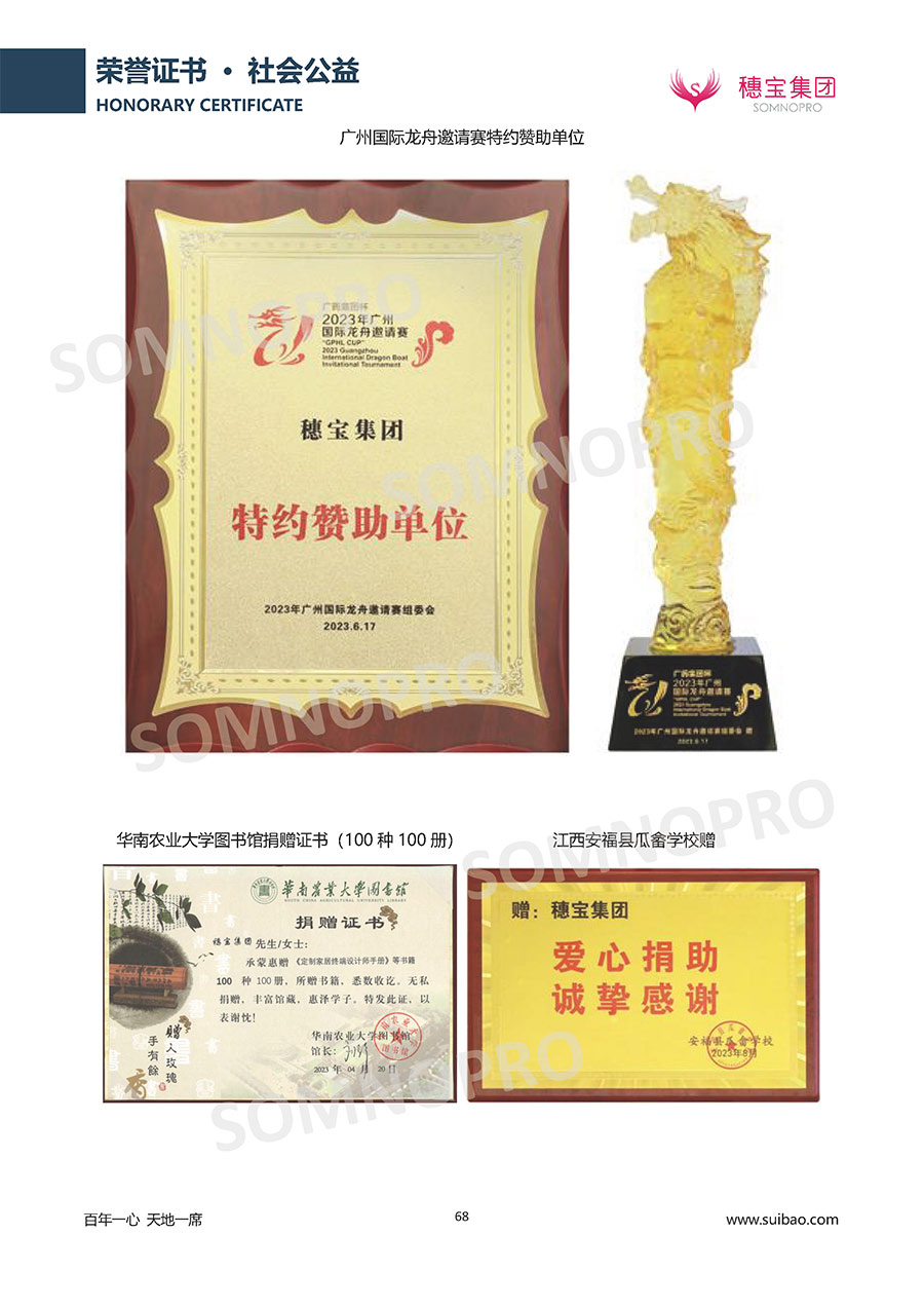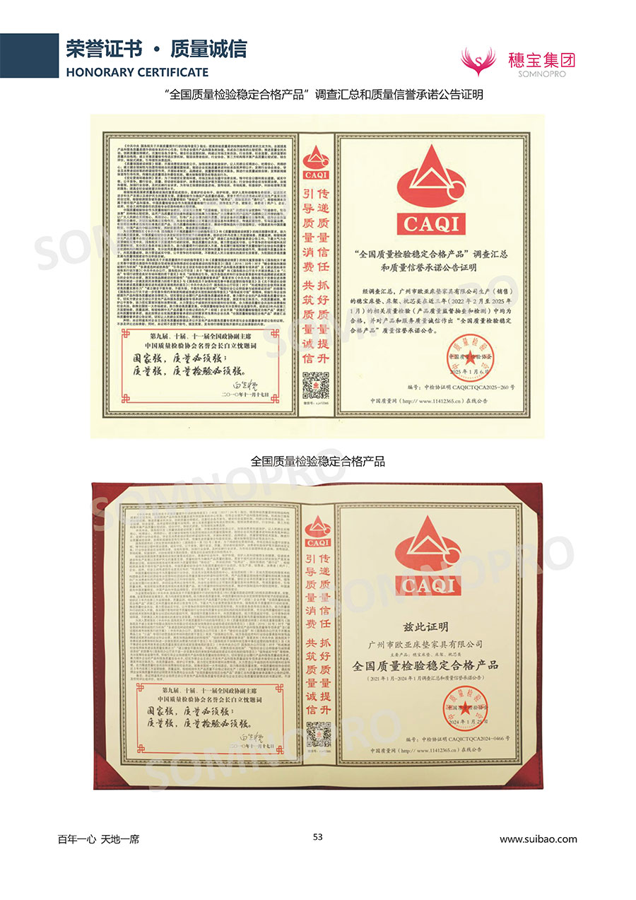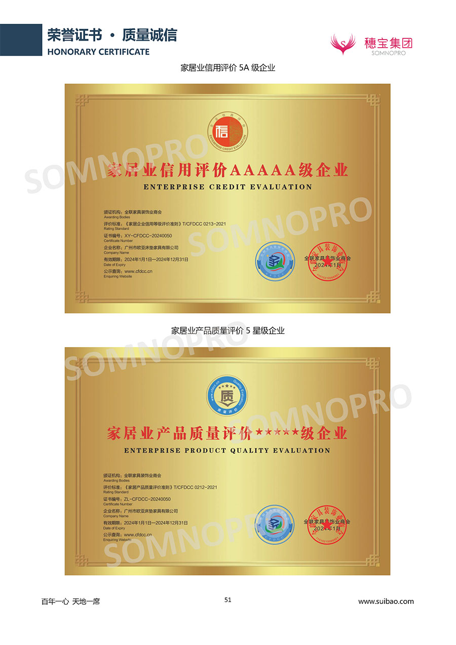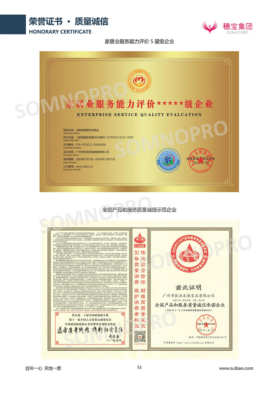 半個世紀的付出,穗寶集團在深度睡眠領域收獲非凡成就,贏得業(yè)界與社會的一致贊譽。作為大家居行業(yè)的品質倡導者,穗寶集團不斷創(chuàng)新,豐富品牌實力,致力推動中國床墊產業(yè)發(fā)展。