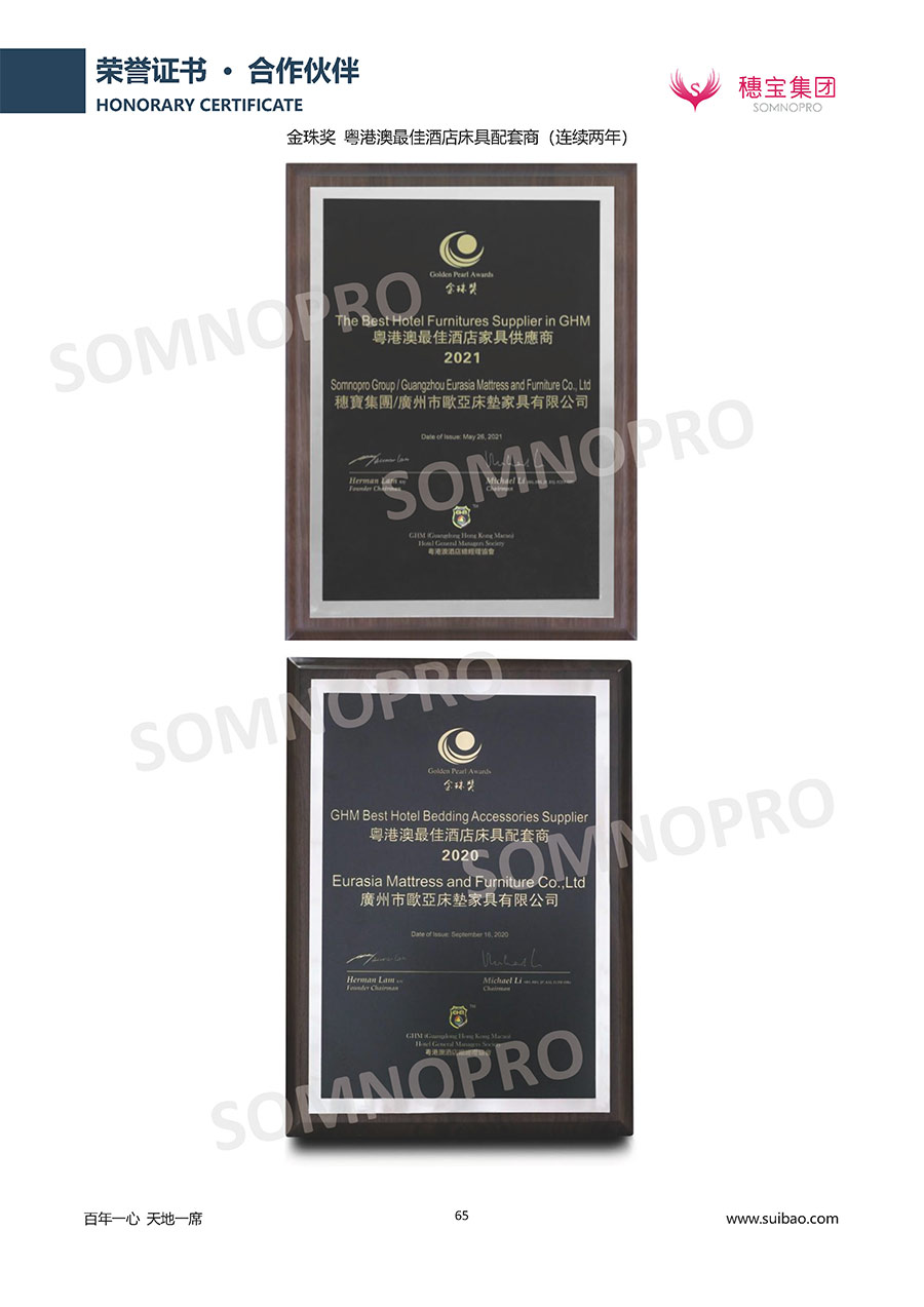 超越每個客房體驗,領軍中國床墊行業(yè);兩大產品科研中心,專注深度睡眠研究穗寶集團遍訪全球,深度整合世界優(yōu)質資源,專注睡眠研究,與世界家具材料行業(yè)領導者禮恩派集團結成戰(zhàn)略伙伴,成立睡眠研究中心和彈簧網檢測中心,引入床墊鋪面耐久性測試儀,材料拉力測試儀,床墊撓度曲線測試儀,為產品注入優(yōu)秀基因;成功研發(fā)推出IFEEL深睡感知系統(tǒng)、X7研發(fā)系統(tǒng),關注消費者每一個細微的睡眠需求,致力于以科學的方式創(chuàng)造優(yōu)異的物理與心理助眠條件,幫助現代人獲得優(yōu)質深度睡眠;不斷創(chuàng)新進取,軀位步技術、T-GUARD衡力支承系統(tǒng)等多項成果獲國內國際專利。