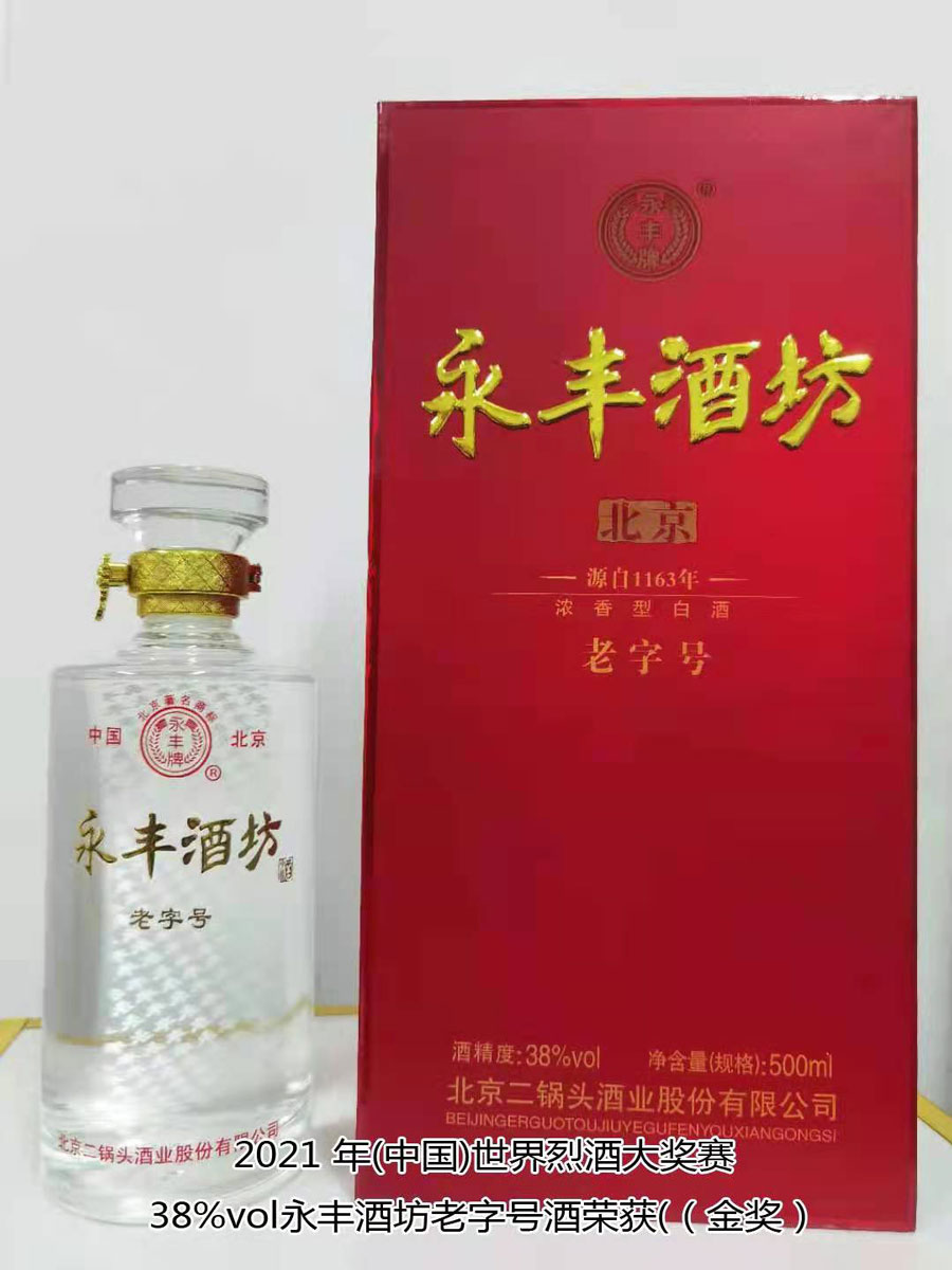 北京二鍋頭酒業(yè)股份有限公司傳承老北京二鍋頭傳統(tǒng)釀造技藝,產(chǎn)品選用優(yōu)質(zhì)高粱為原料,以麩曲為糖化發(fā)酵劑,采用老五甑發(fā)酵法、混蒸混燒、看花接酒、掐頭去尾、長(zhǎng)期儲(chǔ)存、精工勾兌而成。產(chǎn)品多次獲得各種優(yōu)質(zhì)產(chǎn)品稱號(hào),“永豐牌”商標(biāo)2000年度、2004年度、2007年度連續(xù)三屆被北京市工商行政管理局認(rèn)定為北京市著名商標(biāo);2003年9月,“永豐”二鍋頭、京王子酒被評(píng)為北京市優(yōu)秀新產(chǎn)品獎(jiǎng);2004年,被授予“中國(guó)白酒質(zhì)量?jī)?yōu)秀產(chǎn)品”及首都市場(chǎng)“質(zhì)量、信譽(yù)、服務(wù)”優(yōu)秀企業(yè)、優(yōu)質(zhì)產(chǎn)品稱號(hào);2006年11月,被評(píng)為“中國(guó)歷史文化名酒”;2007年12月,被評(píng)為“AAA”級(jí)信用企業(yè),同年榮獲“中國(guó)質(zhì)量過(guò)硬知名品牌”;2011年5月,“永豐”牌被中華人民共和國(guó)商務(wù)部評(píng)為“中華老字號(hào)”;2021年10月,在2021國(guó)際酒類(中國(guó))大獎(jiǎng)賽中,北京二鍋頭酒業(yè)股份有限公司共獲得五枚金牌,其中38%vol永豐酒坊老字號(hào)酒、46%vol永豐品鑒酒、52%vol醉流霞瓷瓶酒、50%vol永豐粱大俠(典藏)酒四款產(chǎn)品榮獲“金獎(jiǎng)”,50%vol永豐二鍋頭(國(guó)運(yùn))酒榮獲“大金獎(jiǎng)”。此次大獎(jiǎng)賽北京二鍋頭酒業(yè)股份有限公司榮登“金獎(jiǎng)”之首,得到了國(guó)際酒類(中國(guó))大獎(jiǎng)賽組委會(huì)及全國(guó)頂級(jí)評(píng)酒大師、酒業(yè)泰斗專家們的一致好評(píng),肯定了北京二鍋頭酒業(yè)股份有限公司專業(yè)技術(shù)人員高超的技藝和敬業(yè)的工匠精神。