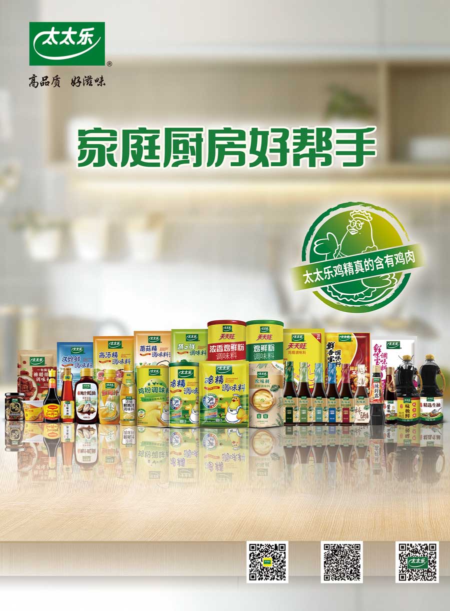太太樂產品覆蓋固態(tài)復合風味調味料和液態(tài)增鮮調味料兩大類的不同系列,多個子品牌,產品規(guī)格近300個品項。太太樂憑借雀巢體系的國際化管理體制、全球化質量監(jiān)管體系、強大的研發(fā)實力和卓越的員工團隊,依托以餐飲、零售、電商、出口為主的四大銷售渠道,銷售網絡覆蓋全國各地,并出口至美國、加拿大、日本、中東等國家和地區(qū)。作為鮮味科學倡導者,太太樂以“讓十三億人嘗到更鮮美的滋味”為企業(yè)愿景,持續(xù)鮮味行業(yè)革新升級。