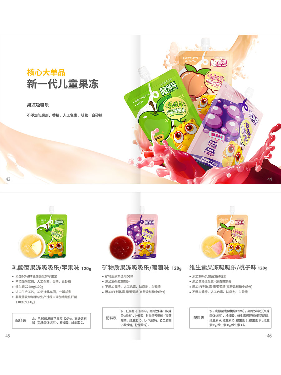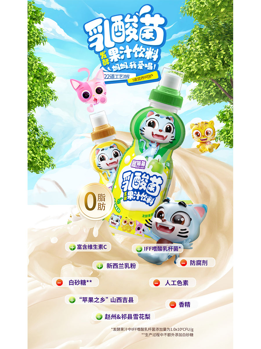主要產品:哆貓貓乳酸菌果汁飲料、兒童果凍吸吸樂、兒童奶巧、嬰幼兒標準類產品