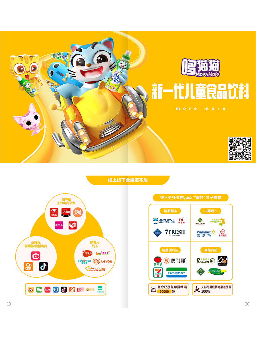 截至2022年3月,在創(chuàng)始人帶領下,哆貓貓品牌高速發(fā)展,成立不到1年半,已經先后推出了1款果汁飲料類超級大單品,3款爆款單品以及超過50款KSU。銷售渠道實現線上包括天貓、京東、抖音等全渠道鋪設,線下全國百強母嬰連鎖全部入駐,以及山姆、盒馬、胖東來、華潤等精品商超,點位約20000家,沃爾瑪即將上架銷售。