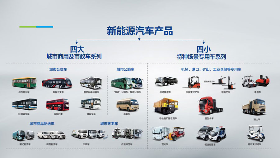 主要產(chǎn)品:純電動(dòng)物流車和叉車等;氫燃料客車和公交車;純電動(dòng)客車和公交車;智能儲(chǔ)能系統(tǒng);充電設(shè)備;銀隆鈦鋰電池