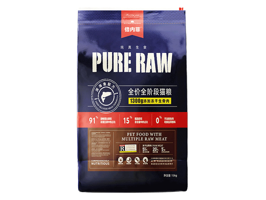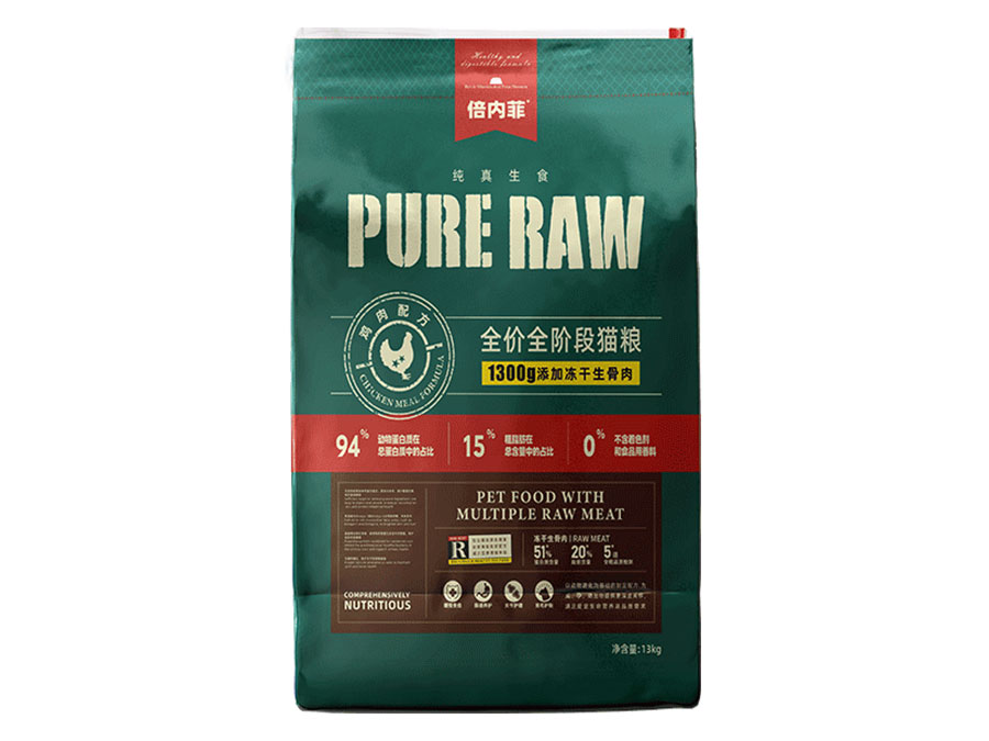倍內(nèi)菲產(chǎn)品含有高含量的動(dòng)物性蛋白以及盡可能少的碳水化合物,所以選擇純真生鮮飲食的方式,用高蛋白主糧顆粒大搭配鮮肉凍干、生骨肉,用科學(xué)、安全、天然、營養(yǎng)、健康的飲食,讓寵物回歸自然天性。