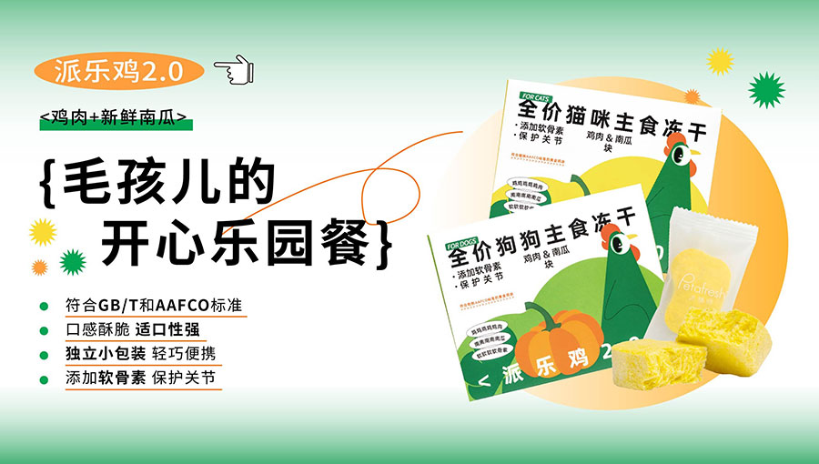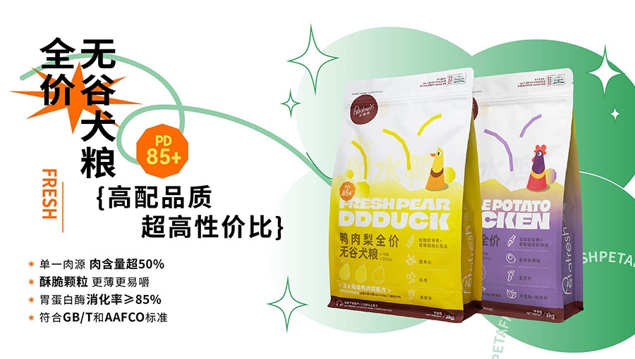 目前品牌已擁有鮮食、零食、膨化主糧等產(chǎn)品線,主打“好吸收才是真營養(yǎng)”的PD膨化干糧系列,上線后收獲無數(shù)好口碑,鮮食讓寵物方便食用到原汁原味的新鮮“膳食”,自主研發(fā)的派樂雞、鴨食卷等創(chuàng)意零食也受到消費(fèi)者的廣泛認(rèn)可與喜愛。2023年以中國犬只實際運(yùn)動量為研發(fā)基底推出全新“能量系列”犬糧,讓科學(xué)養(yǎng)寵更簡單。