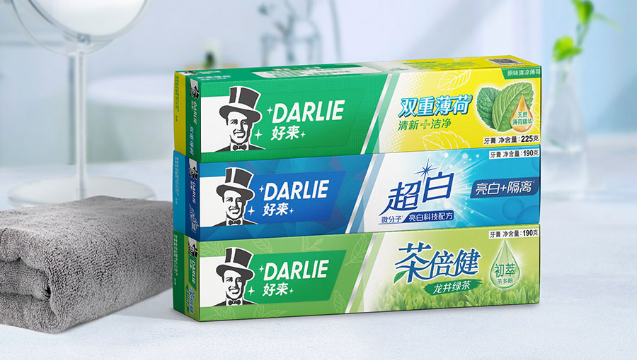 目前DARLIE好來牙膏共有數(shù)十個品種、多種規(guī)格(18g-250g),其中銷往中國大陸市場包括經(jīng)典的雙重薄荷系列、茶倍健系列、超白系列、專研護齦系列、抗敏感系列、透心爽系列,兒童牙膏系列及新增了白.酵素系列和星耀白系列等20個品種,另外還有多個品種同時銷往新加坡、馬來西亞、泰國、中國香港和中國臺灣等市場。