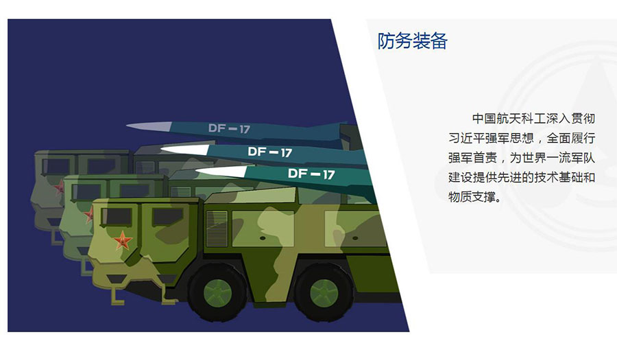 中國航天科工積極適應世界軍事發(fā)展趨勢和我軍軍事斗爭準備急需,深入貫徹習近平強軍思想,貫徹新時代軍事戰(zhàn)略方針,聚焦如期實現(xiàn)建軍一百年奮斗目標,著眼復雜戰(zhàn)場環(huán)境下的作戰(zhàn)需求,加速戰(zhàn)略性、前沿性、顛覆性技術創(chuàng)新,加速武器裝備升級換代和智能化武器裝備發(fā)展,推動科研生產(chǎn)能力不斷增強、新型導彈武器不斷涌現(xiàn)、裝備科研生產(chǎn)體系更加完整,為人民軍隊捍衛(wèi)國家主權、安全、發(fā)展利益提供先進的技術基礎、物質(zhì)保障和強有力的導彈武器裝備戰(zhàn)略支撐。