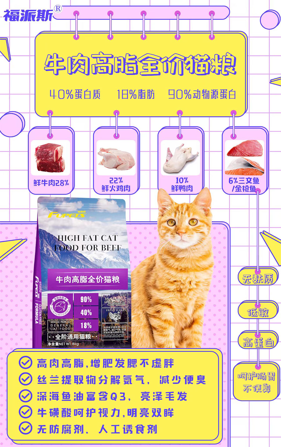 福派斯致力于呵護(hù)愛寵的健康,產(chǎn)品涵蓋犬用、貓用兩大類別,涉及寵物主糧、濕糧、零食等,以“自然食材、科學(xué)配方、真摯熱愛”為品牌核心理念,為愛寵提供健康全面的營(yíng)養(yǎng)保障,讓人們養(yǎng)寵更輕松,讓鏟屎官和愛寵們彼此陪伴的更長(zhǎng)久。
