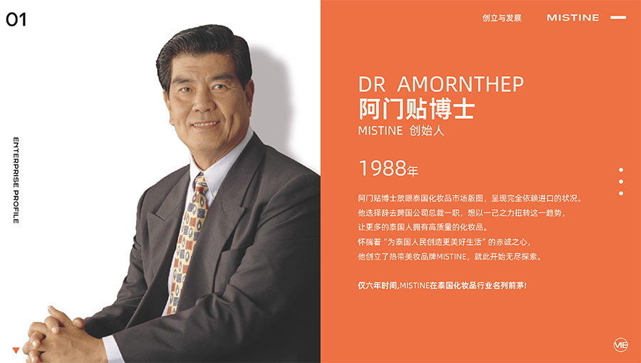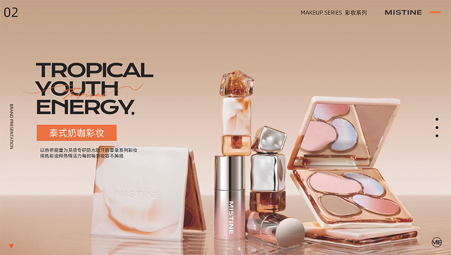 MISTINE蜜絲婷1988年始源于泰國,作為知名國際美妝品牌,擁有36年科研底蘊,產(chǎn)品種類涵蓋防曬、美妝、護膚、香水、個護五大類,擁有近6000多個單品暢銷全球20多個國家,專注為全球女性提供豐富、安全、高品質(zhì)的美妝產(chǎn)品。自2016年進入中國后,MISTINE蜜絲婷以“熱帶青春能量美妝”為品牌定位,為年輕人打造更懂得他們的全新美妝產(chǎn)品,并傳遞獨特的健康活力生活方式。