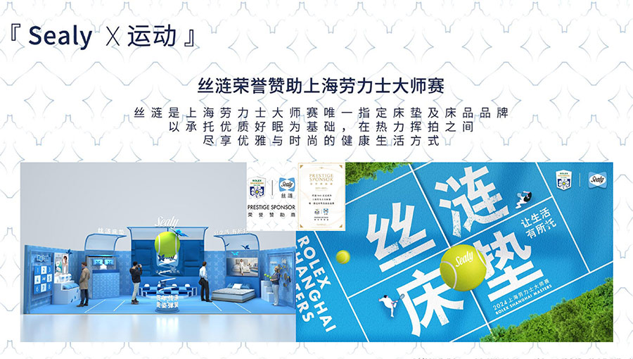 絲漣是上海勞力士大師賽唯一指定床墊及床品品牌,以承托優(yōu)質(zhì)好眠為基礎(chǔ),在熱力揮拍之間盡享優(yōu)雅與時(shí)尚的健康生活方式。