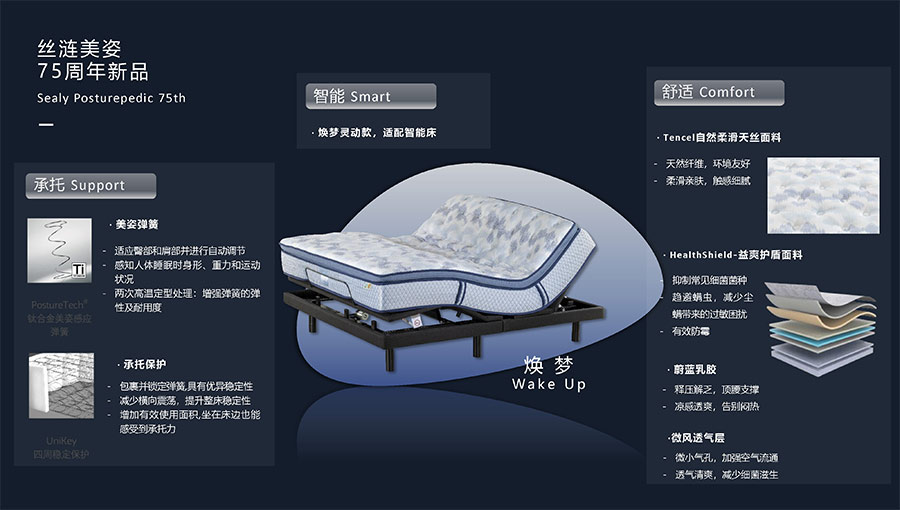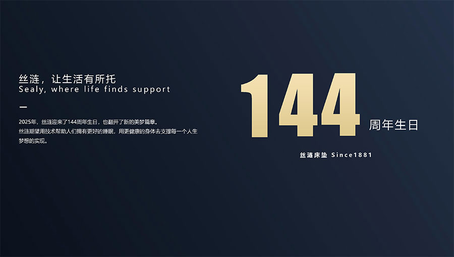 絲漣SEALY1881年誕生于美國,自1885年第一張絲漣床墊問世伊始,便憑借其卓越性能與舒適安睡體驗(yàn)聲名大噪。1950年,絲漣開創(chuàng)床墊與醫(yī)學(xué)權(quán)威共研的先河,絲漣美姿以科學(xué)的脊柱支撐理念徹底重塑了床墊行業(yè)。75年來,持續(xù)的技術(shù)升級和創(chuàng)新使得美姿彈簧不斷進(jìn)化,只為打造更加舒適健康的睡眠體驗(yàn)。