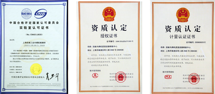 國家內(nèi)燃機(jī)質(zhì)量監(jiān)督檢驗(yàn)中心是中國合格評定國家認(rèn)可委員會(huì)認(rèn)可的檢測實(shí)驗(yàn)室,認(rèn)可名稱為上海機(jī)械工業(yè)內(nèi)燃機(jī)檢測所。