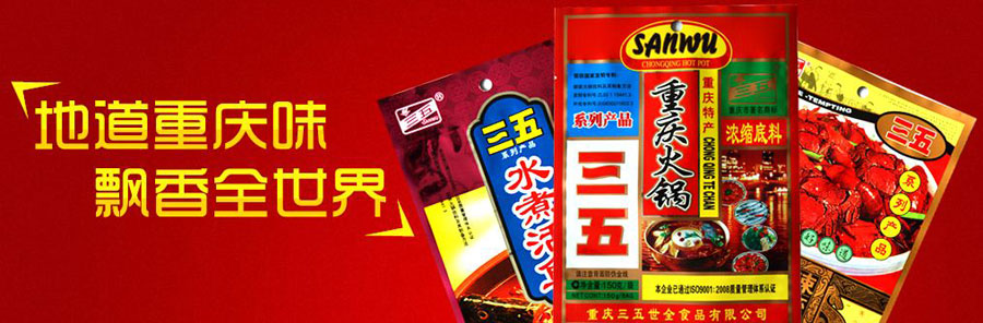 重慶三五世全食品有限公司(原重慶市渝中區(qū)三五火鍋佐料廠)是一家以生產(chǎn)、銷售火鍋佐料及調(diào)料為一體的老品牌食品公司。初期從兩、三人的手工式小作坊發(fā)展成為今天占地60多畝,員工300多人的現(xiàn)代化食品公司,并且擁有行業(yè)中先進的現(xiàn)代化生產(chǎn)設備、全封閉自動化的生產(chǎn)車間以及高素質(zhì)的管理人才。年生產(chǎn)、銷售火鍋佐料及調(diào)料萬余噸,產(chǎn)品暢銷國內(nèi)外。