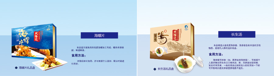 主要產(chǎn)品:天隆達(dá)牌即食海蜇、海草、海帶、海參、鮑魚(yú)等