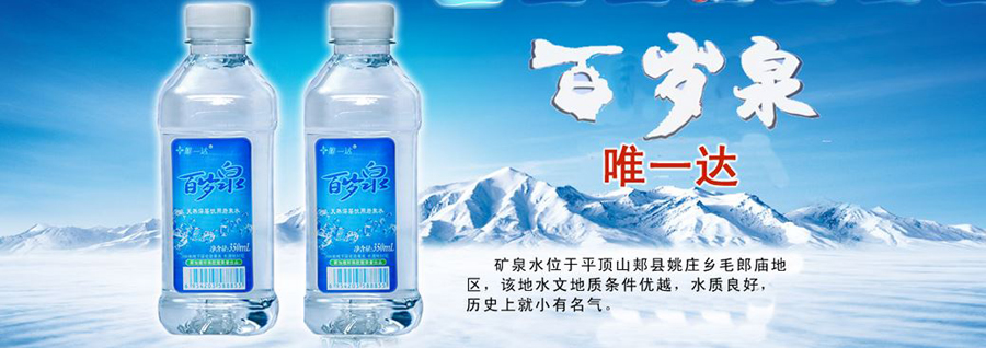 水是生命之源,科學(xué)飲水是健康第一要素。為滿足人們不斷上升的礦泉水質(zhì)量和品位的要求,湖南百歲泉飲品有限公司在全國各地多年研究、考察,終于在有幾千年文化歷史的茶馬古道——郟縣毛郎廟,找到了適合中國人體質(zhì)特點的健康、優(yōu)質(zhì)礦泉水——“唯一達(dá)百歲泉”。目前,湖南百歲泉飲品有限公司全權(quán)負(fù)責(zé)“唯一達(dá)百歲泉”中國區(qū)總經(jīng)銷權(quán),得到郟縣政府大力支持。