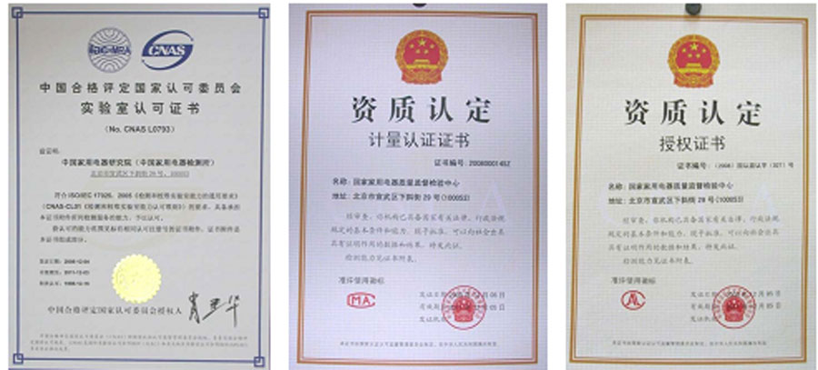 國家家用電器質(zhì)量監(jiān)督檢驗中心(中國家用電器檢測所)是我國最早獲得依據(jù)國際實驗室管理標(biāo)準(zhǔn)認(rèn)可的實驗室之一;是中國國家認(rèn)證認(rèn)可監(jiān)督管理委員會指定的強制性產(chǎn)品認(rèn)證檢測機構(gòu);是中國質(zhì)量認(rèn)證中心、中國環(huán)境標(biāo)志認(rèn)證中心、中國方圓標(biāo)志認(rèn)證中心、北京中輕聯(lián)認(rèn)證中心、中國消費者協(xié)會、北京市消費者協(xié)會的簽約實驗室;獲香港機電署EMSD認(rèn)可核證團體資格。