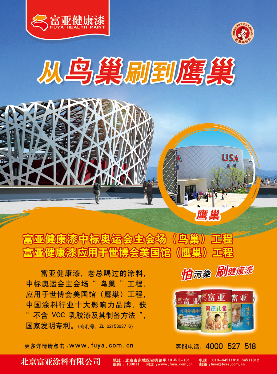 富亞涂料公司擁有多項國家專利,具有資深科研背景,與國內(nèi)各大科研院所、大學(xué)建有密切的合作關(guān)系,對于富亞企業(yè)的科技進(jìn)步,起到了強有力的支持作用。富亞涂料公司作為行業(yè)權(quán)威參與國家標(biāo)準(zhǔn)、行業(yè)標(biāo)準(zhǔn)的制定,為促進(jìn)行業(yè)發(fā)展貢獻(xiàn)了自己的力量。憑借企業(yè)強大的科研實力和雄厚的資金,富亞在環(huán)保與健康這個定位上,集中優(yōu)勢資源,一舉突破并實現(xiàn)VOC≈0的超級健康產(chǎn)品,實現(xiàn)了人類對健康乳膠漆的理想追求。2007年富亞產(chǎn)品一舉中標(biāo)奧運會“鳥巢”裝飾工程;2011年富亞公司榮獲了北京市工商行政管理局頒發(fā)的2010年度“北京市著名商標(biāo)”榮譽證書;2012年,富亞健康漆入選商務(wù)部《對外援助成套項目主要設(shè)備材料產(chǎn)品目錄》。