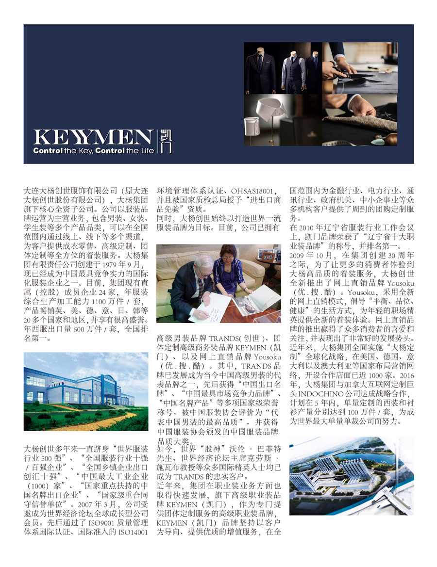主要產品:KEYYMEN(凱門)高端男裝、新銳時尚服裝、學生裝等系列服裝服飾