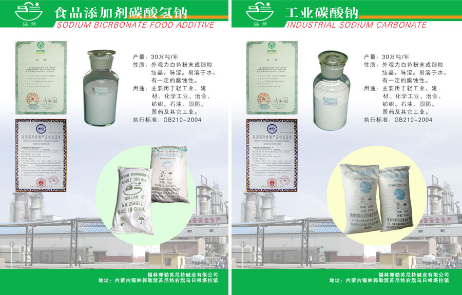 主要產(chǎn)品:遠興牌、中天牌純堿(工業(yè)碳酸鈉),馬蘭牌小蘇打