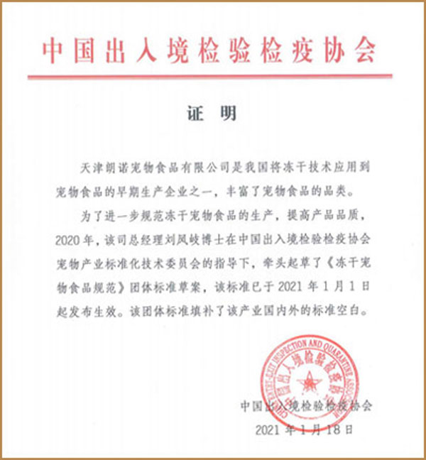 不僅在產(chǎn)品本身實(shí)現(xiàn)突破,2021年1月1日,在中國(guó)出入境檢驗(yàn)檢疫協(xié)會(huì)寵物產(chǎn)業(yè)標(biāo)準(zhǔn)化技術(shù)委員會(huì)指導(dǎo)下,由朗諾董事長(zhǎng)劉鳳岐博士領(lǐng)銜起草的《凍干寵物食品規(guī)范》正式頒布并實(shí)施。身為十三年出口企業(yè),朗諾相信,通過(guò)不斷完善的行業(yè)標(biāo)準(zhǔn),越來(lái)越多真正優(yōu)秀的國(guó)內(nèi)品牌將更易獲得認(rèn)同,中國(guó)寵物食品行業(yè)也將勢(shì)如破竹、蒸蒸日上。期待不久將來(lái)中國(guó)民族企業(yè)將全線崛起,以嶄新的面貌立于全球市場(chǎng)的潮流之中。