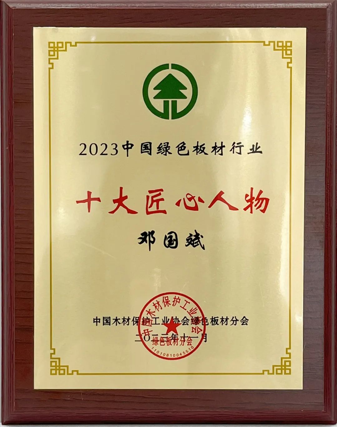 此外,憑借持續(xù)在環(huán)保型裝飾材料的研發(fā)和推廣上的領(lǐng)先優(yōu)勢(shì),福漢木業(yè)還榮獲了“2023年中國(guó)綠色板材品牌十強(qiáng)企業(yè)”“2023年中國(guó)綠色板材行業(yè)十大匠心人物”兩項(xiàng)榮譽(yù)。