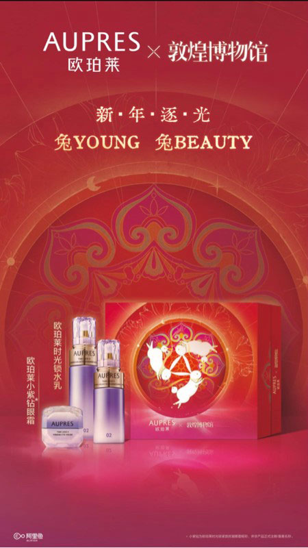 逐光之路,溯源敦煌。「三兔共耳」所形成的循環(huán)往復(fù)、生生不息的狀態(tài),就如同歐珀萊邀請每一位愛用者一同鎖住美好時光,奔跑不息、逐夢不停的真摯愿望一般:新年逐光,兔YOUNG兔BEAUTY!