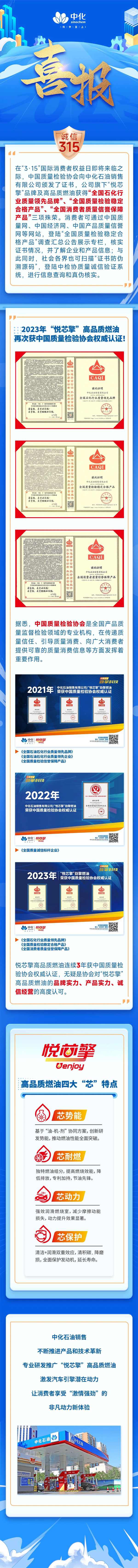 悅芯擎高品質(zhì)燃油獲得“全國石化行業(yè)質(zhì)量領(lǐng)先品牌”等三項榮譽(yù)
