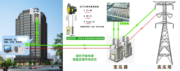 愛登堡自主研發(fā)的集成四象限變頻器,利用上升和下降的不平衡重量將勢能轉化為動能和電能發(fā)電,給樓宇的用電設備使用、減少樓宇設備向外界獲取的電能。愛登堡綠色電梯節(jié)能減碳技術,降低產(chǎn)品能耗,減少環(huán)境污染,推動社會綠色低碳發(fā)展,為實現(xiàn)碳達峰碳中和做出一份貢獻。