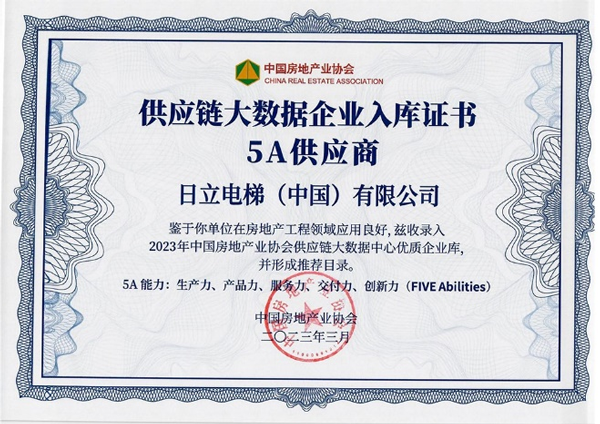 同時,日立電梯憑借在“生產(chǎn)力、產(chǎn)品力、服務(wù)力、交付力、創(chuàng)新力”的出色表現(xiàn),成為中國房地產(chǎn)業(yè)協(xié)會供應(yīng)鏈大數(shù)據(jù)中心“5A供應(yīng)商” 入庫企業(yè)。