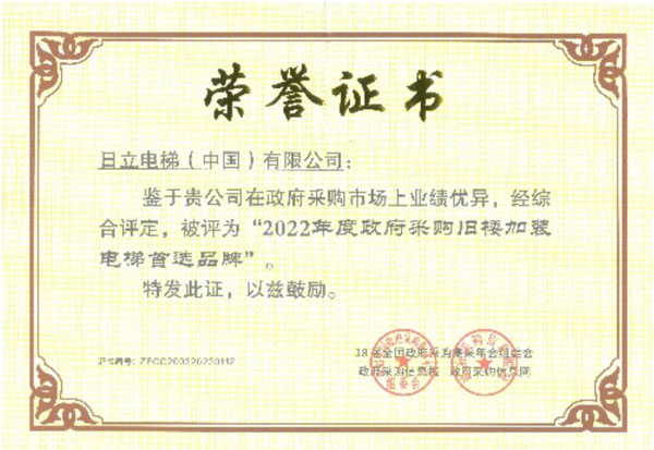 日立電梯獲得2022年度政府采購電梯首選品牌、政府采購舊樓加裝電梯首選品牌