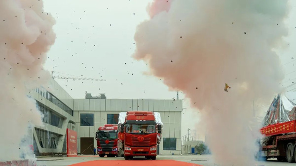 4月6日下午13點(diǎn)38分,隨著兩排禮炮沖天而起,一排滿載電梯的卡車緩緩駛出通用電梯未來(lái)工廠的大門(mén),通用電梯向蘇州地鐵8號(hào)線交付的首批電/扶梯正式發(fā)運(yùn)。