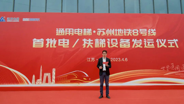 通用電梯蘇州地鐵8號(hào)線項(xiàng)目各執(zhí)行部門(mén)均到場(chǎng)參加了發(fā)運(yùn)儀式,執(zhí)行總裁徐斌先生主持了發(fā)運(yùn)儀式并做致辭。