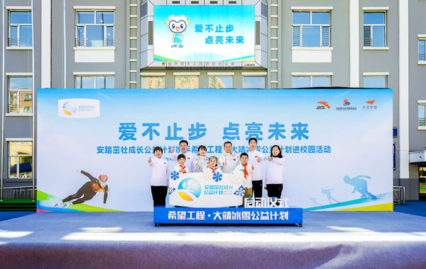 2023年4月20日,安踏茁壯成長公益計劃攜手希望工程·大靖冰雪公益計劃進校園啟動儀式,在黑龍江省佳木斯市前進區(qū)第十一小學(xué)(下簡稱十一小學(xué))舉行。通過體教融合,深耕青少年體育公益,發(fā)展冰雪運動,為青少年茁壯成長賦能。安踏集團為十一小學(xué)全體師生捐贈了安踏裝備包,捐建了武大靖-安踏夢想中心,體育教師接受了安踏體育課教師培訓(xùn)。短道速滑奧運冠軍武大靖重返兒時母校,分享冠軍故事,首次推出大靖冰雪課。安踏集團執(zhí)行董事、聯(lián)席CEO吳永華,安踏集團副總裁李玲,共青團黑龍江省委書記徐長勇,黑龍江省佳木斯市委副書記、代市長王鐵,上海真愛夢想公益基金會理事長潘江雪,共同出席活動,央視頻進行了全程直播。