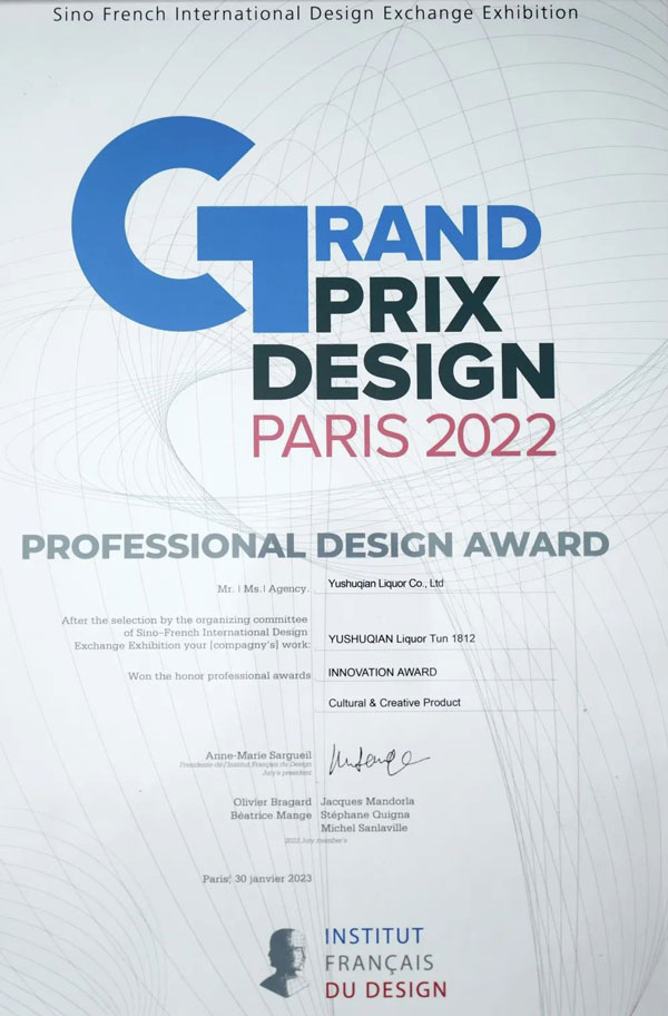 《榆樹(shù)錢酒海1812》,成功通過(guò)最終評(píng)審榮獲法國(guó)雙面神GPDP AWARD國(guó)際設(shè)計(jì)大獎(jiǎng)-國(guó)際創(chuàng)新設(shè)計(jì)獎(jiǎng)!