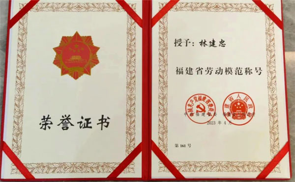 海佳集團(tuán)董事長林建忠被授予“福建省勞動(dòng)模范”榮譽(yù)稱號(hào)