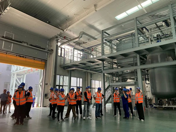 在李艷國董事長、生產(chǎn)部經(jīng)理王建成等領(lǐng)導(dǎo)的陪同下,商學(xué)院觀摩團先后參觀了新廠的基礎(chǔ)油儲罐區(qū)、實驗中心、潤滑油調(diào)和設(shè)備及灌裝生產(chǎn)線、潤滑脂調(diào)和設(shè)備、金屬加工油液/防凍液/尿素溶液的生產(chǎn)工藝及設(shè)備。