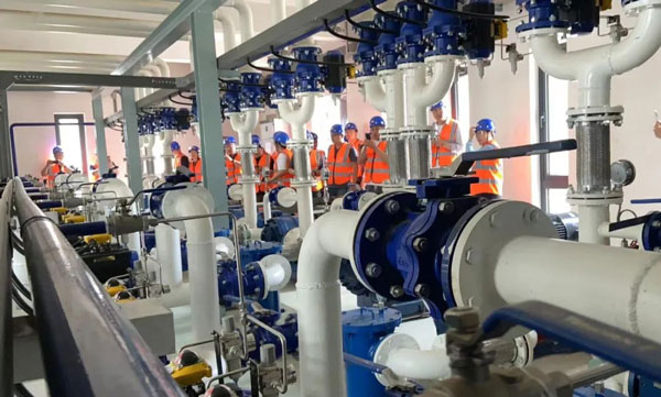 觀摩團嘉賓行至B車間參觀尿素溶液灌裝線及智能貨架