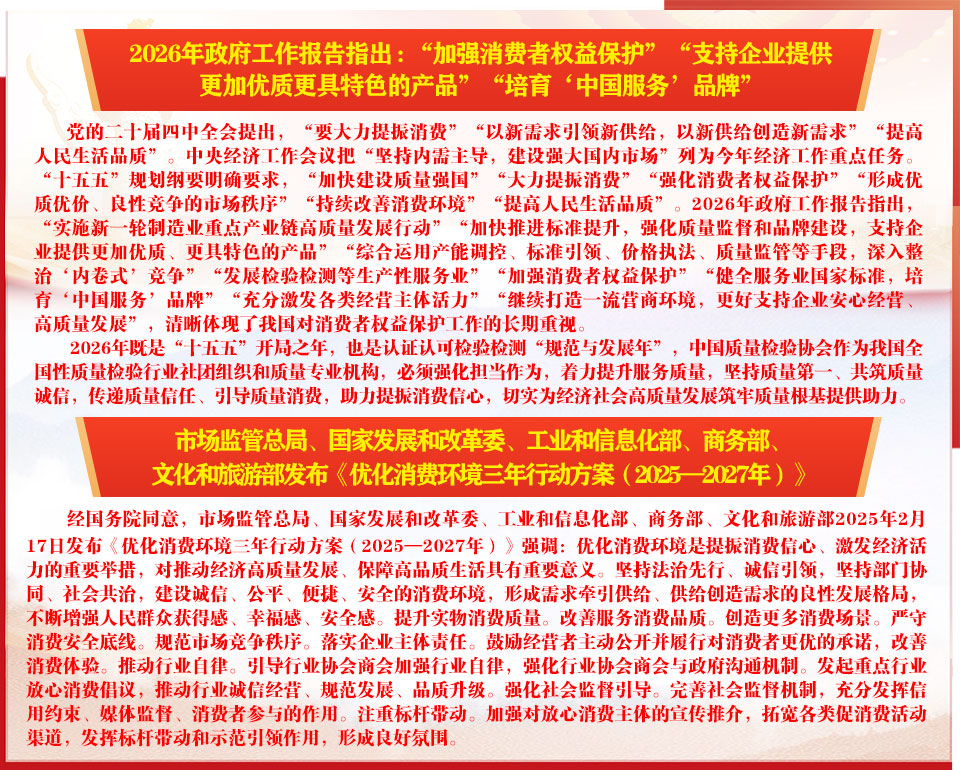 ——2026年“3·15”國際消費者權(quán)益日“產(chǎn)品和服務(wù)質(zhì)量誠信承諾”主題活動 - 抓好質(zhì)量提升 共筑質(zhì)量誠信 傳遞質(zhì)量信任 引導(dǎo)質(zhì)量消費 助推企業(yè)高質(zhì)量發(fā)展 維護(hù)消費者合法權(quán)益