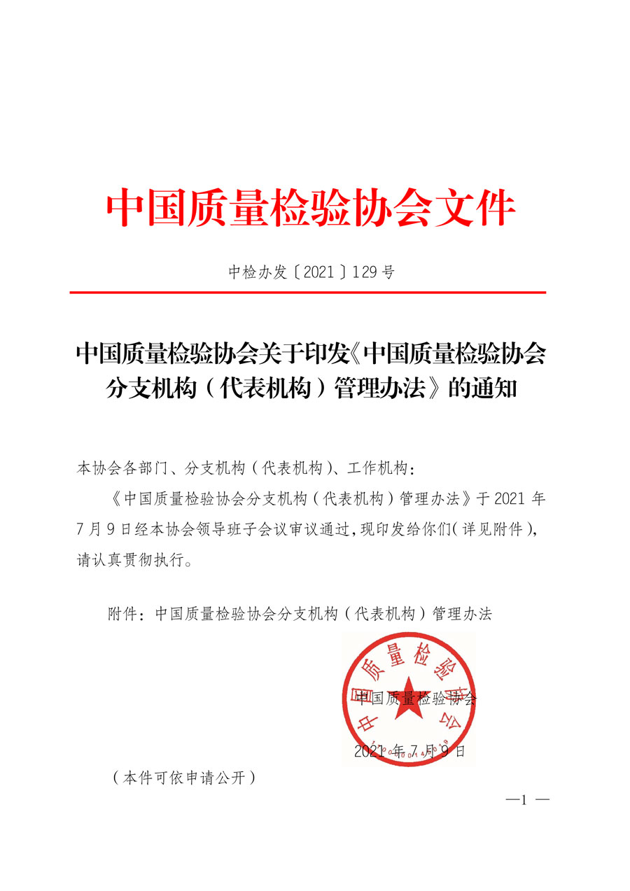 中國質(zhì)量檢驗協(xié)會關(guān)于印發(fā)《中國質(zhì)量檢驗協(xié)會