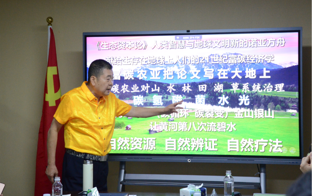 在交流會上,袁東來教授以《富碳農(nóng)業(yè)“碳”索未來》為題進行專題授課,介紹了碳中和、富碳農(nóng)業(yè)及其發(fā)展創(chuàng)新理念等相關(guān)理論知識,對國際國內(nèi)相關(guān)實踐經(jīng)驗進行了講解,深入闡釋了碳中和與地區(qū)高質(zhì)量發(fā)展的關(guān)系并就富碳農(nóng)業(yè)的發(fā)展與展望、“雙碳”背景下農(nóng)業(yè)產(chǎn)業(yè)的綠色轉(zhuǎn)型等問題進行了分析與解讀。集團董事長黃慶明、集團監(jiān)事長云恒寧、集團顧問團隊劉錦超教授、柏威廉教授、吳俁達教授及全體管理人員參加了此次交流。