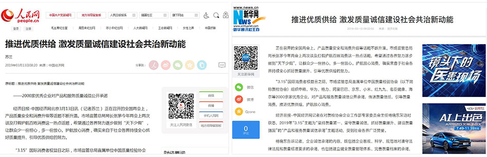 •中國經(jīng)濟網(wǎng)《推進優(yōu)質(zhì)供給 激發(fā)質(zhì)量誠信建設社會共治新動能 2000家優(yōu)秀企業(yè)對產(chǎn)品和服務質(zhì)量誠信公開承諾》