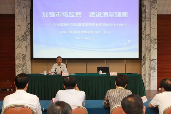 在我國第40個全國“質(zhì)量月”到來之際,9月1日,由中共中央組織部、中國浦東干部學院和國家市場監(jiān)督管理總局共同舉辦的“省部級干部建設質(zhì)量強國專題研討班”在滬開班,這也是繼兩年前在京舉辦首個省部級干部“全面實施質(zhì)量強國戰(zhàn)略專題研討班”之后的第二個省部級質(zhì)量強國戰(zhàn)略專題研討班。市場監(jiān)管總局局長、黨組副書記張茅作為首位授課人,在專題研討班上以“加強市場監(jiān)管 建設質(zhì)量強國”為題做了專題講座。