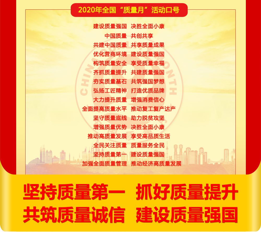 不忘初心建設(shè)質(zhì)量強(qiáng)國,牢記使命決勝全面小康。黨中央、國務(wù)院歷來高度重視質(zhì)量工作。以習(xí)近平同志為核心的黨中央更是把質(zhì)量擺到了戰(zhàn)略高度。我們要深入學(xué)習(xí)貫徹習(xí)近平新時代中國特色社會主義思想和黨的十九大精神,全面宣傳貫徹習(xí)近平總書記關(guān)于推動高質(zhì)量發(fā)展的重要論述,認(rèn)真落實(shí)黨中央、國務(wù)院關(guān)于質(zhì)量工作的重大決策部署,以質(zhì)量提升服務(wù)疫情防控和經(jīng)濟(jì)社會發(fā)展大局,推動企業(yè)通過提升質(zhì)量效益和競爭力,更好應(yīng)對疫情帶來的沖擊和挑戰(zhàn),堅(jiān)持以人民為中心,堅(jiān)持新發(fā)展理念,推進(jìn)高質(zhì)量發(fā)展,做好“六穩(wěn)”工作、落實(shí)“六保”任務(wù),深入推進(jìn)質(zhì)量提升行動開展,助力決戰(zhàn)決勝脫貧攻堅(jiān),為建設(shè)質(zhì)量強(qiáng)國、決勝全面建成小康社會提供有力支撐。